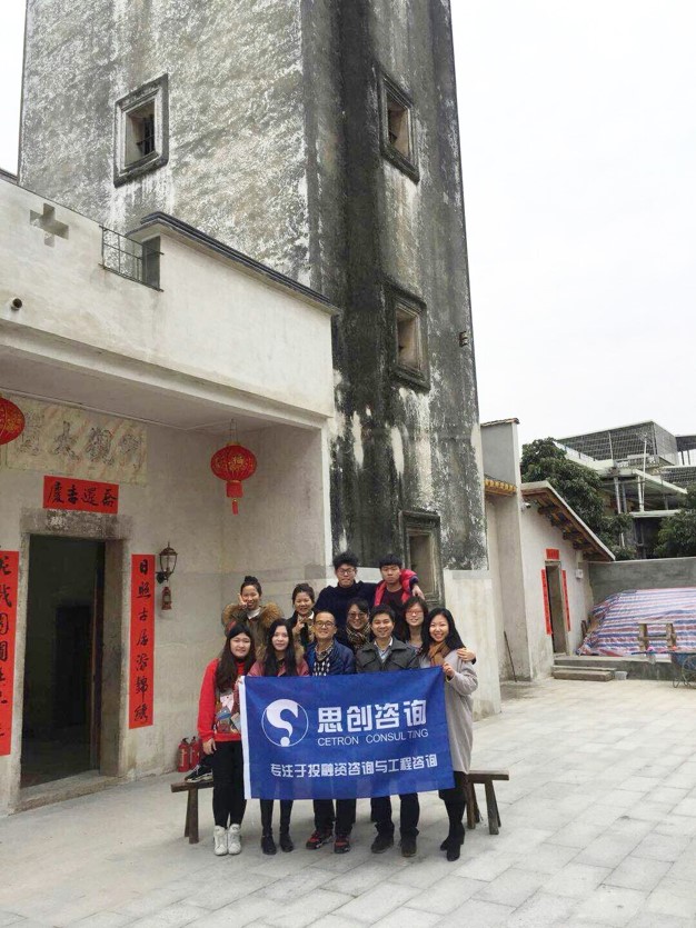 2018年2月7日,为丰富员工业余文化生活,缓解工作压力,增强团队凝聚力,思创咨询走进昇齐楼,在深圳市勘察研究院文化遗产保护工程中心主任曹伟先生的带领下,零距离感受奇巧精美的建筑艺术和醇厚精深的文化底蕴。这座历经八十五年沧桑的民族建筑正门朝南,是一炮楼拖两横屋的炮楼院式建筑,5层高18.5米,占地面积约674平方米,炮楼每层有1个大房间,顶部四周呈拱形突起,沿墙四周及屋顶设有射击孔、瞭望口,曾是东江纵队抗日据点之一。